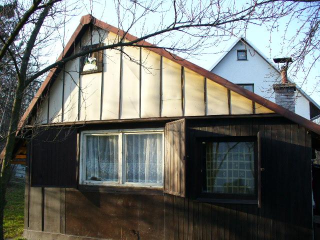 Dřevěná zateplená chata 2 kk (zast.plocha 40 m2) s podkrovím a balkonem, s nádherným výhledem na okolí, na vlastním pozemku 420 m2 jehož součástí je i zahradní nezateplená chatka 10 m2 s podkrovím....